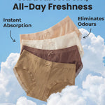 Enjoy breathable and ultra soft comfort with our antibacterial knickers, created to deliver lasting freshness, effortless flexibility, and reliable support all day long. They move naturally with your body, keeping you dry, comfortable, and confident from morning to night.